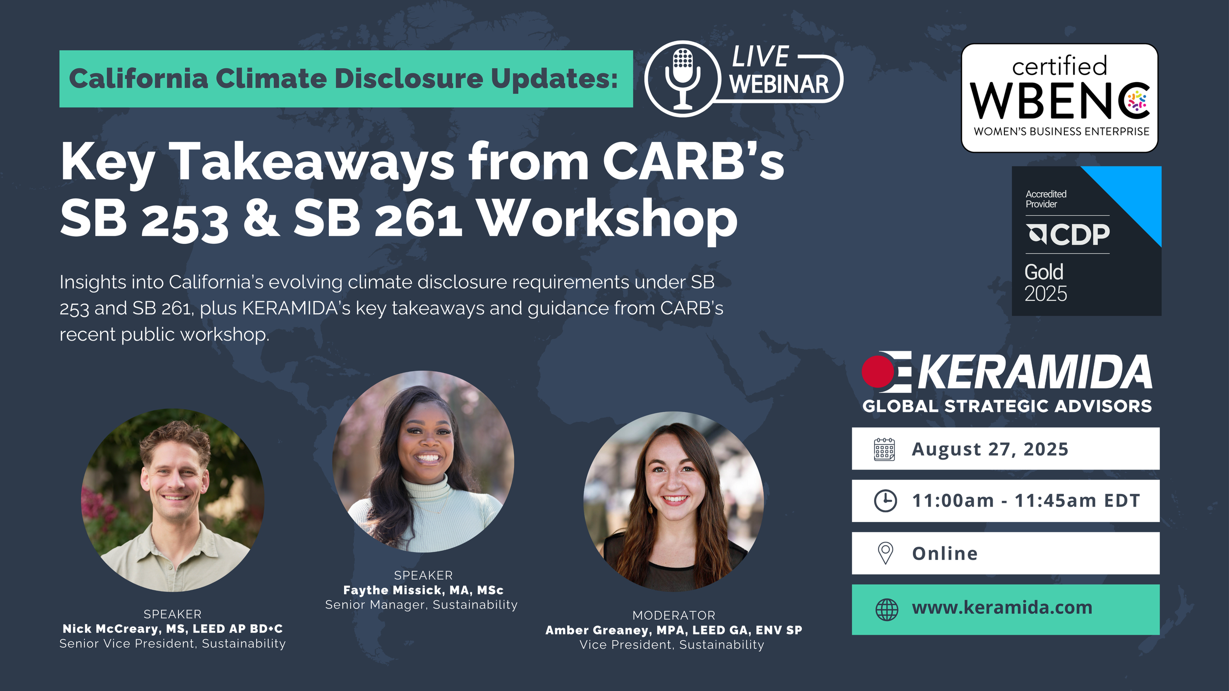 Insights into California’s evolving climate disclosure requirements under SB 253 and SB 261, plus KERAMIDA’s key takeaways and guidance from CARB’s recent public workshop on August 21, 2025.